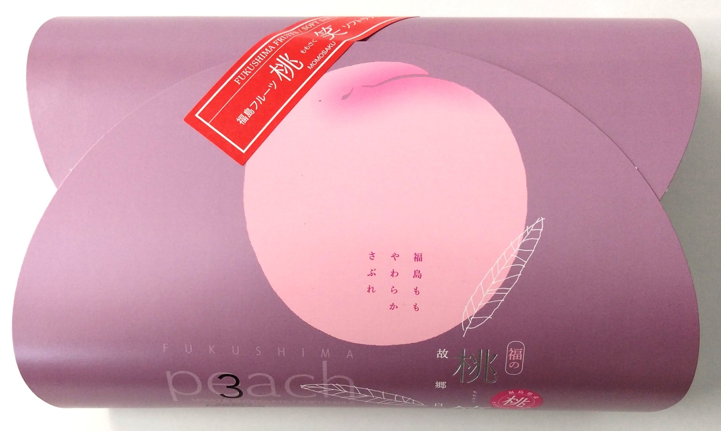 ■原材料 チョコレート(国内製造)、小麦粉(小麦(福島県産))、砂糖、マーガリン、卵、バター、セミドライフルーツ白桃(もも(福島県産)、砂糖)、水飴、牛乳、ピーチ果汁加工品(果糖ブドウ糖液糖、ピーチ濃縮果汁)、洋酒、食塩/トレハロース、甘味料(L-アラピノース)、膨張剤、乳化剤、酸味料、酸化防止剤(V、C)、クエン酸、香料、着色料(赤3号、赤105号、ラック、パーム油カロチン)、(一部に乳成分・小麦・卵・もも・大豆を含む)